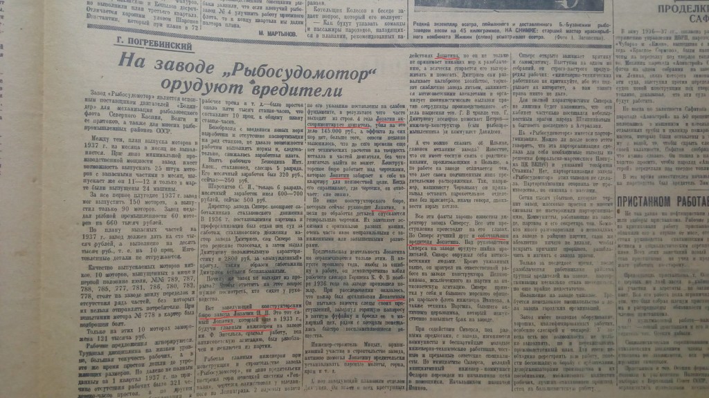 Работая главным инженером при конструкции и строительстве завода ‘Рыбосудомотор’, он явно вредительски построил горн немецкой системы ‘Рокваля’…»